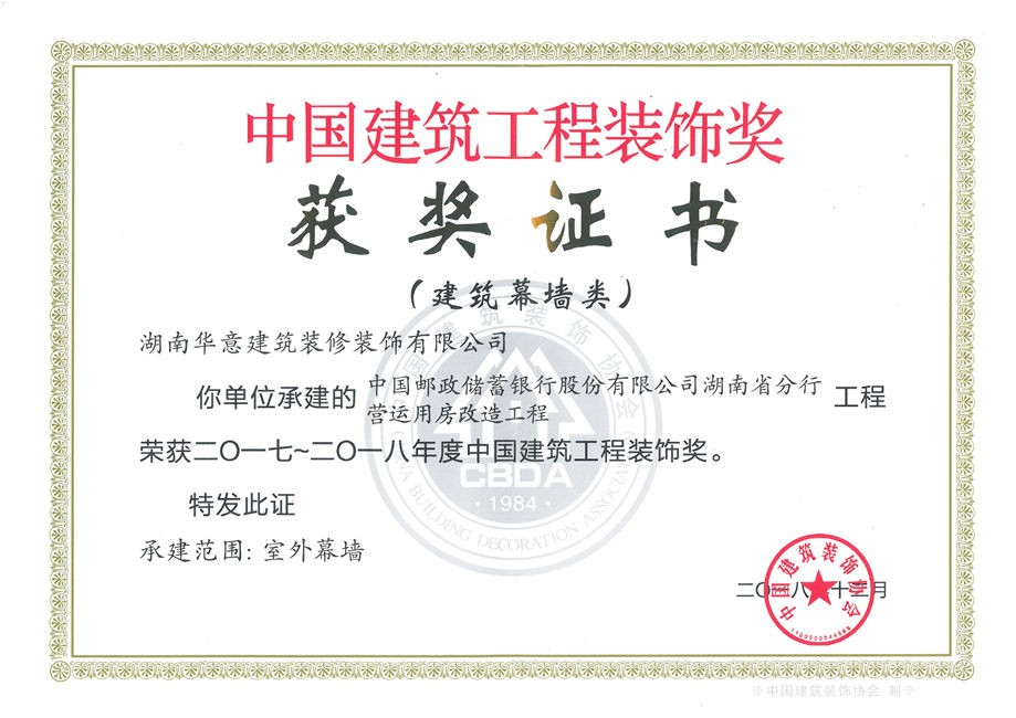 中國郵政儲蓄銀行股份有限公司湖南省分行營運用房裝修改造工程項目施工